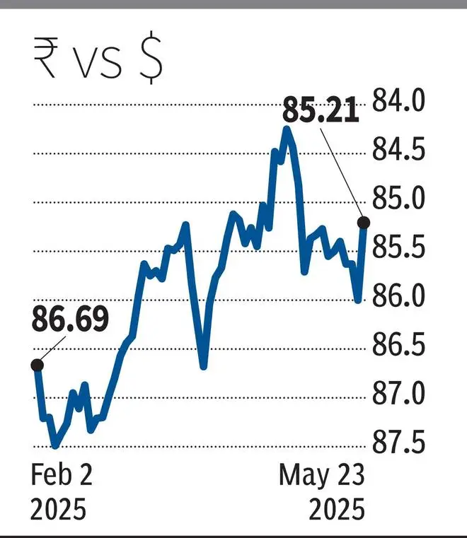 The Indian rupee posted its sharpest single-day gain since November 2022, rising about 80 paise against the US dollar, driven by weakness in the greenback amid concerns over mounting US domestic debt and Moody’s recent credit rating cut.