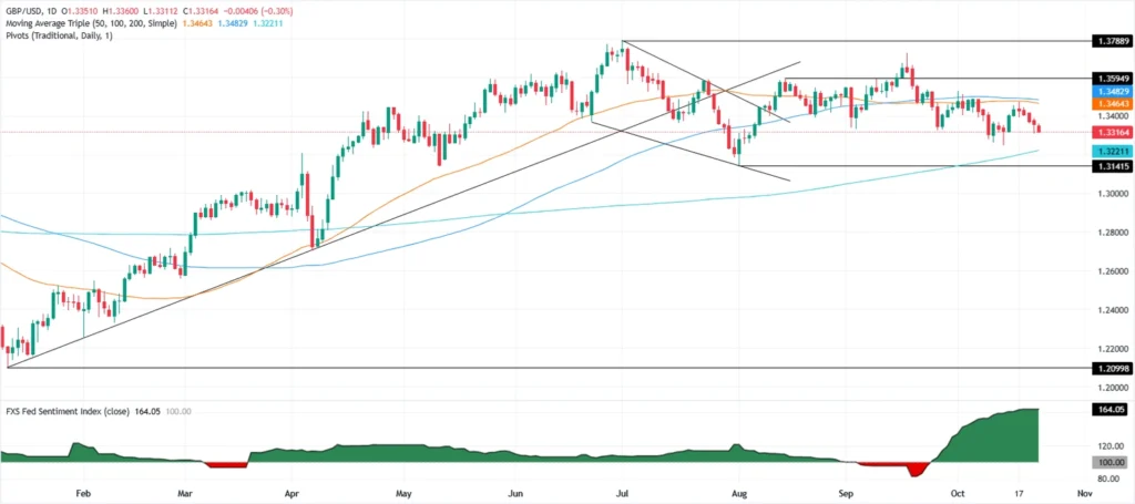 GBP/USD technical picture suggests that the ongoing pullback could extend below 1.3300, which clears the path to challenge the October 14 low of 1.3248 ahead of the 200-day SMA at 1.3217. If those two levels are cleared, up next is 1.3200, followed by the August 1 swing low of 1.3141.